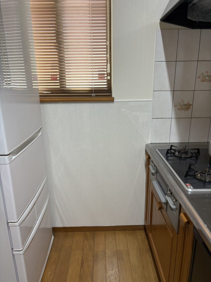 キッチンの壁の汚れが気になるとご相談いただき、掃除がしやすいキッチンパネルを張りました。