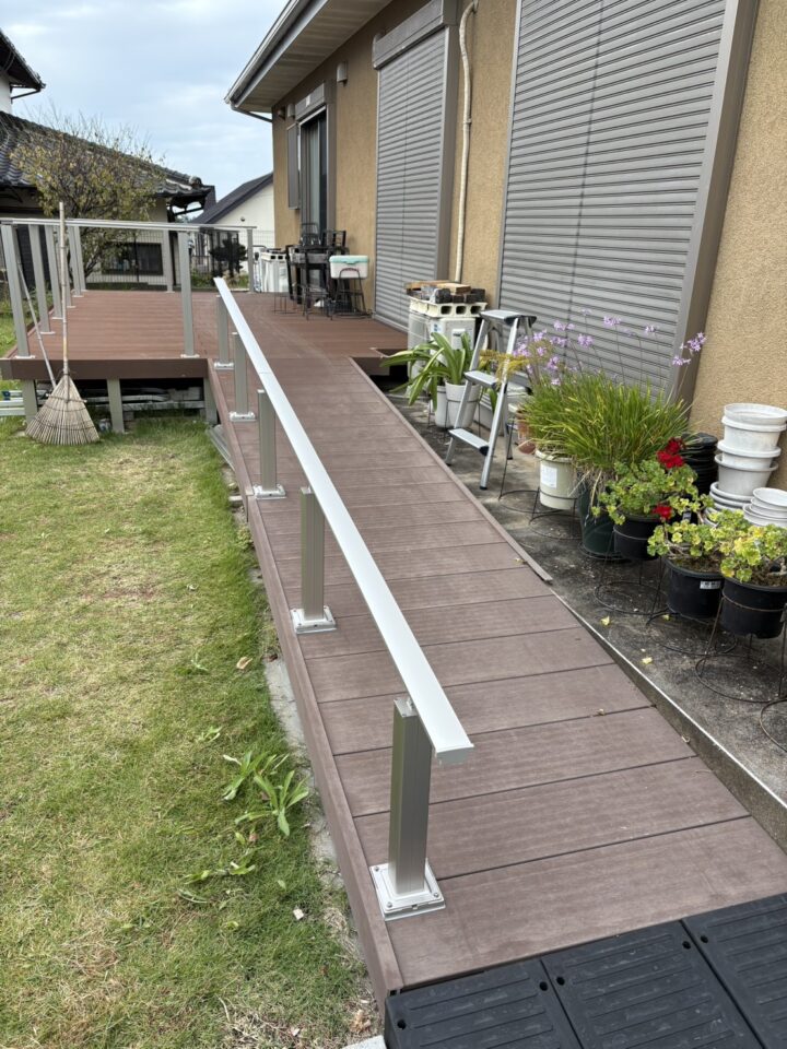 車いす横転防止のためのスロープフェンスを設置したいとお客様よりご相談いただき、取付設置工事をさせて頂きました。
