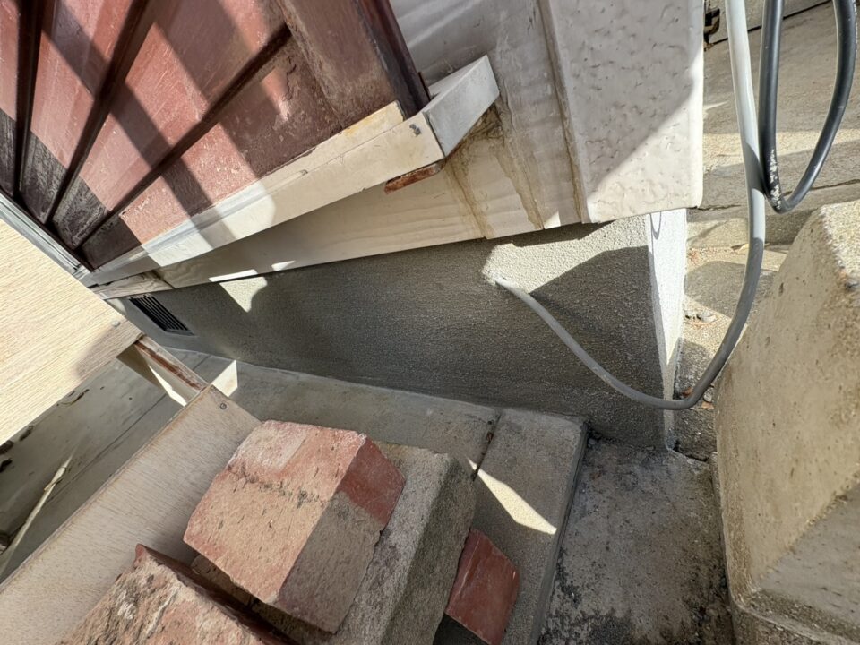 基礎にヒビが入ってしまったとのことで当社にご相談頂き、モルタル補修工事をさせて頂きました。