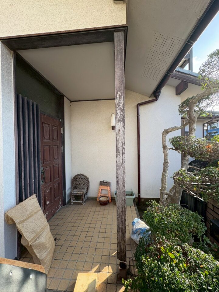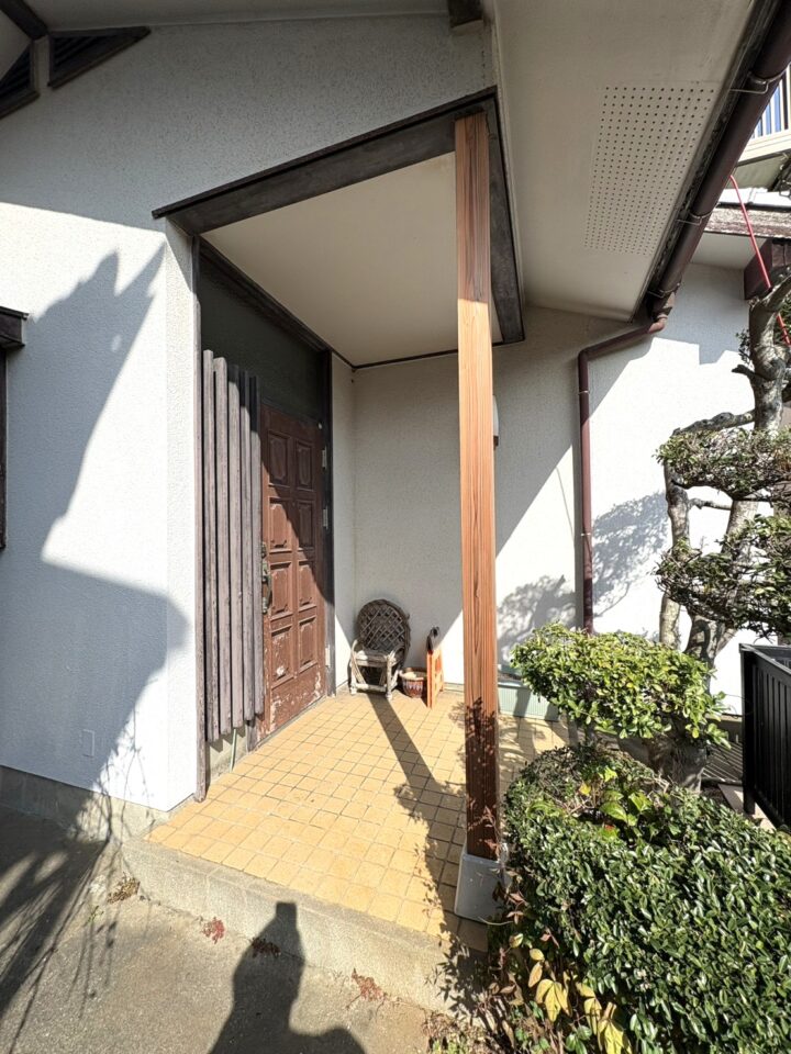 玄関ポーチ柱が腐食してしまい浮いている状況であった為、柱の取替をご提案・実施させて頂きました。