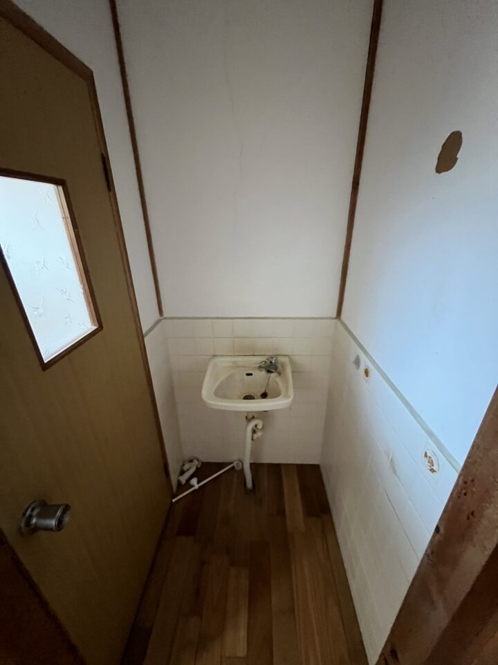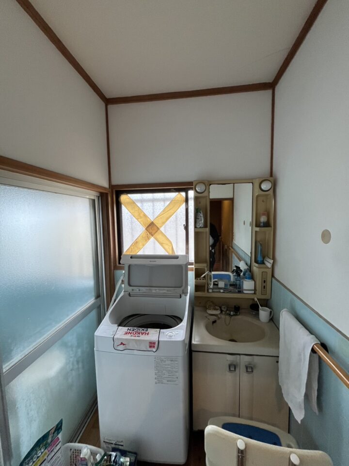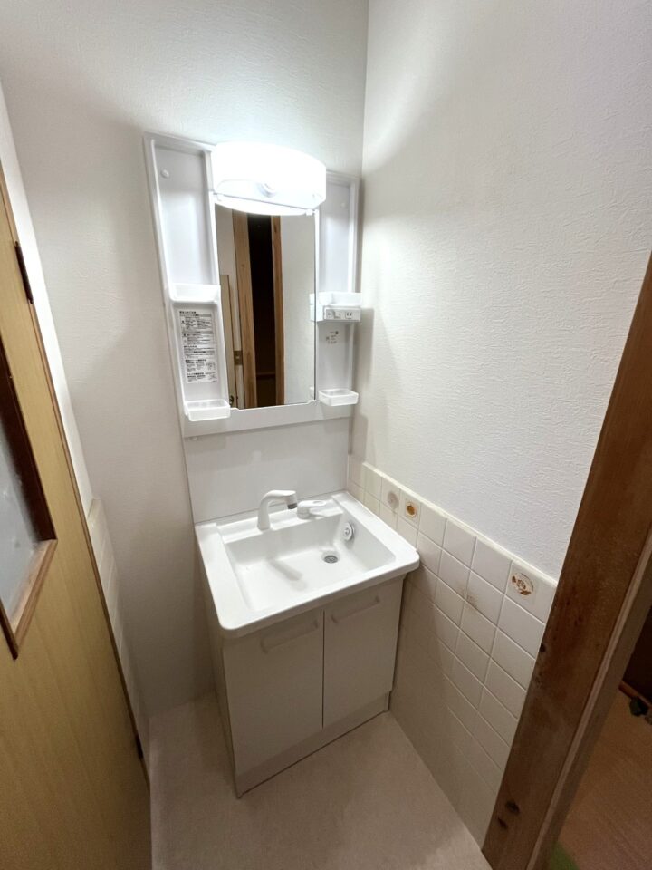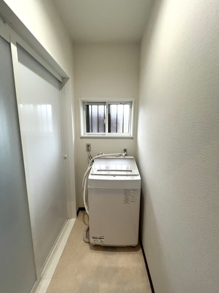 浴室を広くしたいとのことでしたので、脱衣所を縮小させて洗濯置き場にし、洗面台はトイレの横のお部屋に設置させていただきました。