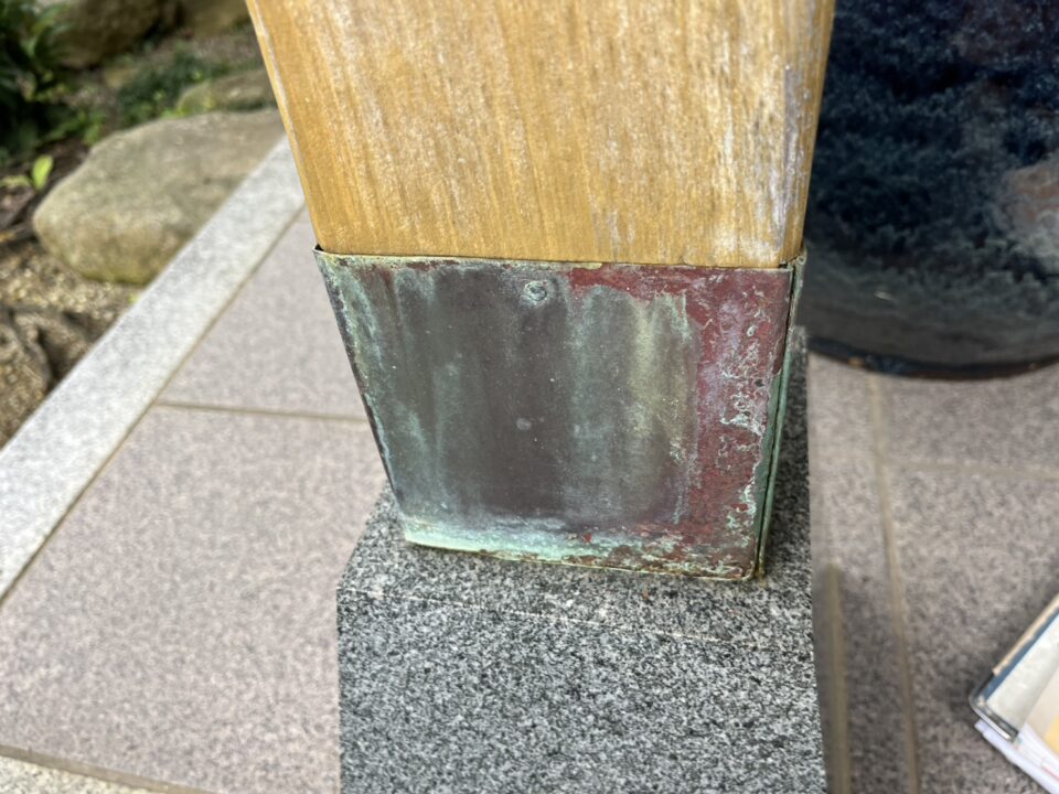 玄関のポーチ柱の銅板が素色の為、板金で取替をさせていただきました。