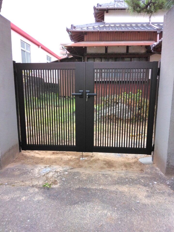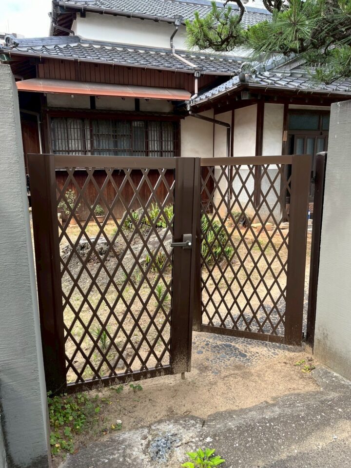 既存の門扉が劣化による動作不良の為、今回取替をさせて頂きました。